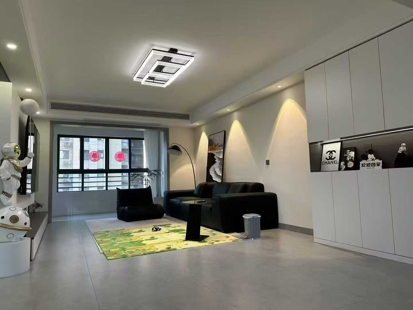 出售:城南阳光水岸122.08平 3室2厅1卫1衣帽间 黑白灰新中式装修风格 全系美的电器 智能门锁 太空人大摆件 房东外地置业 亏本挂价108万