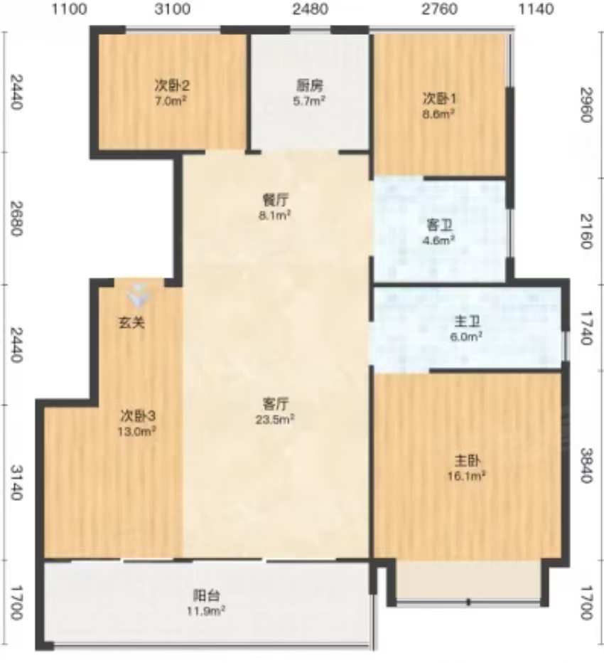 3室2厅2卫 第0层/共11层 南北 建筑年代:不详