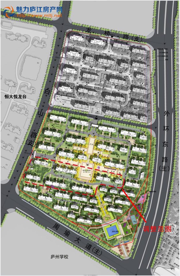华盛•江山御府位于外环东路与周瑜大道交口西北角,该规划原方案于2018年5月通过规划审批,本次调整涉及46#-49#、51#-53#共7栋楼。该调整方案经专家评审、发布听证公告、公开征求意见、召开听证会等程序后,于5月29日经局国土空间规划202104次业务会审查,7月9日经县规委会202101次主任会议研究同意,县自然资源和规划局于8月3日对该项目修建性详细规划进行了批复。现将规划主要成果予以公布:
