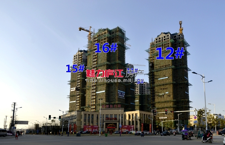 和顺·新天地位于庐江县军二路与五里路交叉口安德利广场南。目前施工进度为:5#、6#楼已封顶(26层),15#、16#楼均已封顶(30层),11#楼、12#楼已封顶,正在进行外墙及内部施工中;小区北入口(安德利广场一侧)商业已经施工至2层。
