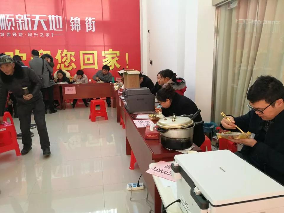 为了便于服务业主,所有工作人员中午不休息,直接在交房大厅吃快餐。