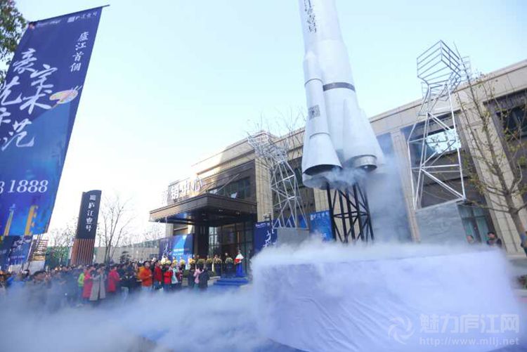 随即惊动庐城的是营销中心外的火箭升空, 伴随巨大的动响,合景泰富安徽公司总经理张民、副总经理朱维新、营销总监胡皓等8位领导进行了剪彩仪式,烟雾之中火箭一跃而起,这寓意着庐江壹号营销中心的第一次亮相也定是不同凡响。