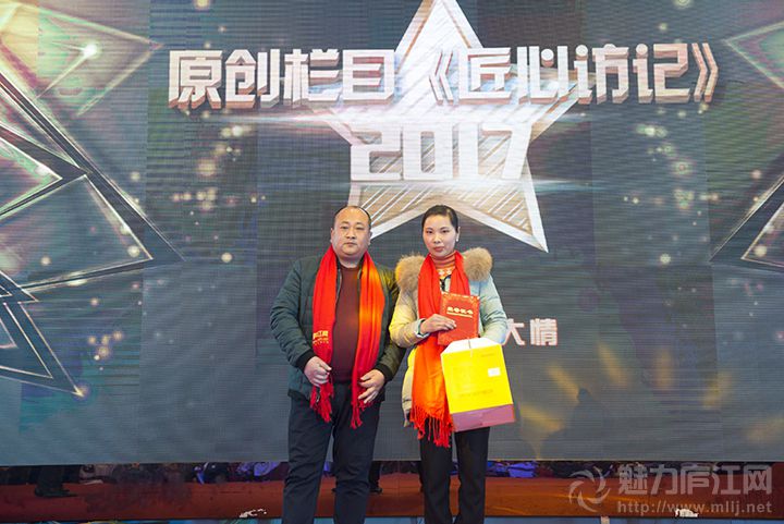 庐江美食网CEO应敏为《匠心访记》代表人物张大情颁奖。
