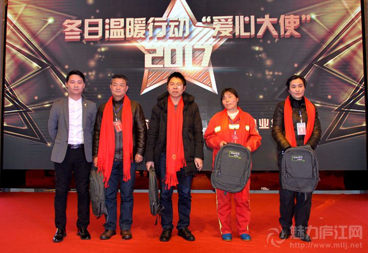 艺术家琴行何总为爱心大使颁奖,冬日温暖行动“爱心大使”汪建平、张欢、高巧云、洪磊、孙业华上台接受颁奖。