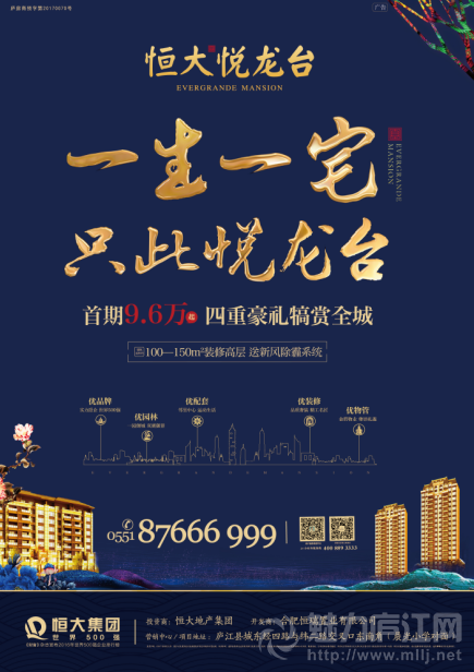 恒大悦龙台在这里给大伙告诉个好消息,为自己和家人创造理想和后半生的大好时机来了!恒大悦龙台元旦优惠升级,首期9.6万即可入主庐江醉美湖山大宅,品质生活一步到位!恒大悦龙台一直以来以豪宅标杆著称,舒阔大宅豪置双阳主卧搭配奢适客厅,让您优享品质理想生活!